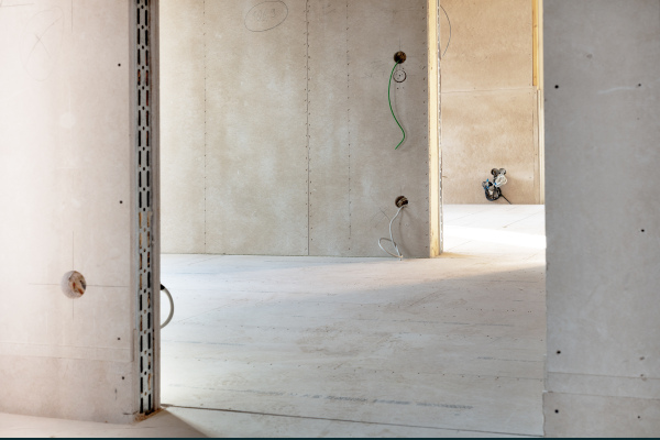 Der Innenausbau ist in voller Fahrt. Mit den robusten und glatten Rigidur H Wandplatten und ISOVER Akustic TP 1 Trennwand-Platten gelingt dies schnell und mit optimalen Schallschutzergebnissen.