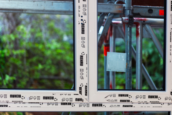 Der Fenstereinbau wird abgeschlossen. Die Wahl fällt auf Kunststofffenster, die unter dem Gesichtspunkt der Zirkularität die bessere Alternative darstellen als Holz- oder Aluminiumfenster.