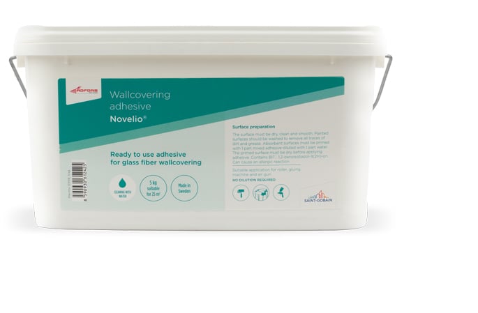 Die Novelio Fusion Glasfasertapete wird mit dem Novelio Kleber auf die Wandfläche geklebt