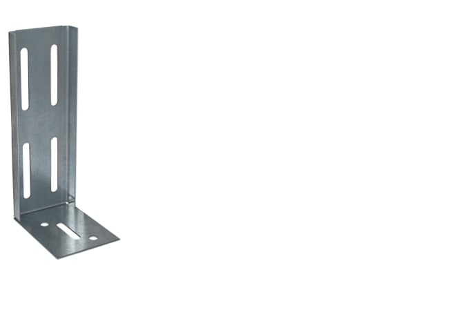 Der Rigips Anschlusswinkel - lang UA 75 besteht aus verzinktem Stahlblech mit extra langem Schenkel und Lochung zum Anschluss an U-Aussteifungsprofilen 75/40-2. Die Geometrie ist auf die Einlage zwischen die Profilflansche abgestimmt. Die Schraubverbindung erfolgt mit Rigips Zargenschrauben M8.