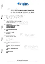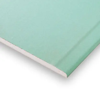 Die imprägnierte Rigips Bauplatte RBI 12,5 ist eine kartonummantelte Gipsplatte nach DIN EN 520, Typ H2. Sie ist kernimprägniert, hat eine verzögerte Wasseraufnahme, einen faserarmierten Gipskern und eine geschlossene Oberfläche.
