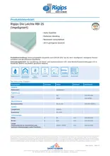 Rigips Die Leichte RBI 25 ist eine kartonummantelte Gipsplatte nach DIN EN 520, Typ H2. Sie ist kernimprägniert, hat eine verzögerte Wasseraufnahme, einen faserarmierten Gipskern und eine geschlossene Oberfläche.