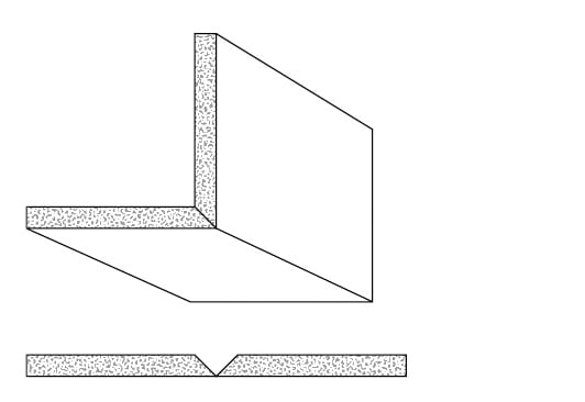 Rigips Faltelemente, 1 x V-Fräsung 90°, unverleimt - Aus Rigips Bauplatten RB 12,5 mm mit einer V-Fräsung von der Rückseite oder der Sichtseite.