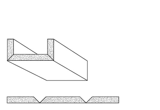 Rigips Faltelemente, 2 x V-Fräsung 90° oben, unverleimt - aus Rigips Bauplatten RB 12,5 mm mit zwei V-Fräsungen von der Rückseite.