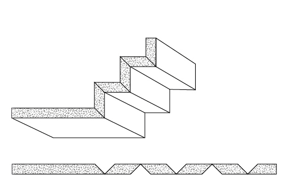 Rigips Faltelemente, 5 x V-Fräsung 90°, unverleimt - aus Rigips Bauplatten RB 12,5 mm mit fünf V-Fräsungen von der Rückseite (drei von oben und zwei von unten).