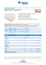 Rigips Glasroc F (Ridurit) 12,5 ist eine vliesarmierte Gipsplatte nach DIN EN 15238-1 vom Typ GM-FH2 mit verringerter Wasseraufnahmefähigkeit und verbessertem Gefügezusammenhalt bei hohen Temperaturen.