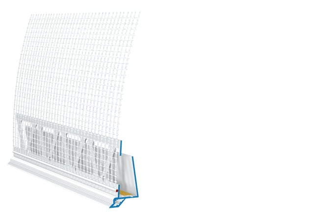 Es sorgt für einen exakten Putzabschluss beim Übergang zu angrenzenden Bauteilen und für eine saubere Tropfkante mit gezielter Wasserführung im Sockelbereich und bei Fensteröffnungen. Das eingeklebte PE Dichtband sorgt für eine optimale Haftung und Dichtung zwischen Aufsteckprofil und der Rigips Glasroc X. Die beiliegenden Steckverbinder dienen der fluchtgerechten Verbindung mehrerer Aufsteckprofile.
