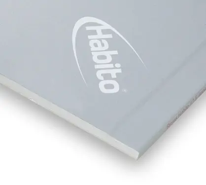 Rigips Habito 12,5 imprägniert ist eine speziell entwickelte massive Trockenbauplatte für Bereiche mit besonderen Schall- und Brandschutzanforderungen, für häusliche Feuchträume, mit erhöhter Oberflächenhärte gegen mechanische Belastungen und komfortabler Lastenbefestigung ohne Dübel.