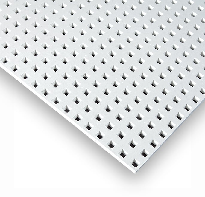 Die Rigitone Activ’Air 12/25 Q ist eine Lochgipsplatte nach DIN EN 14190 mit Premium-Luftreinigungseffekt Activ’Air und rückseitig kaschiertem Akustikvlies.