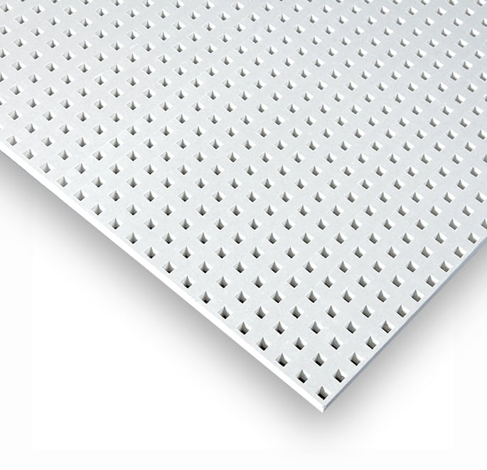 Die Rigitone Activ’Air 8/18 Q ist eine Lochgipsplatte nach DIN EN 14190 mit Premium-Luftreinigungseffekt Activ’Air und rückseitig kaschiertem Akustikvlies.