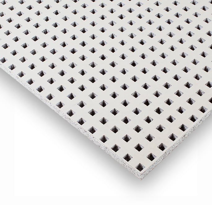 Die Rigitone Climafit 8/18 Q von Rigips ist eine graphitmodifizierte Lochgipsplatte nach DIN EN 14190 mit besonders hoher Wärmeleitfähigkeit = 0,52 W / (m·k) und rückseitig kaschiertem Akustikvlies.