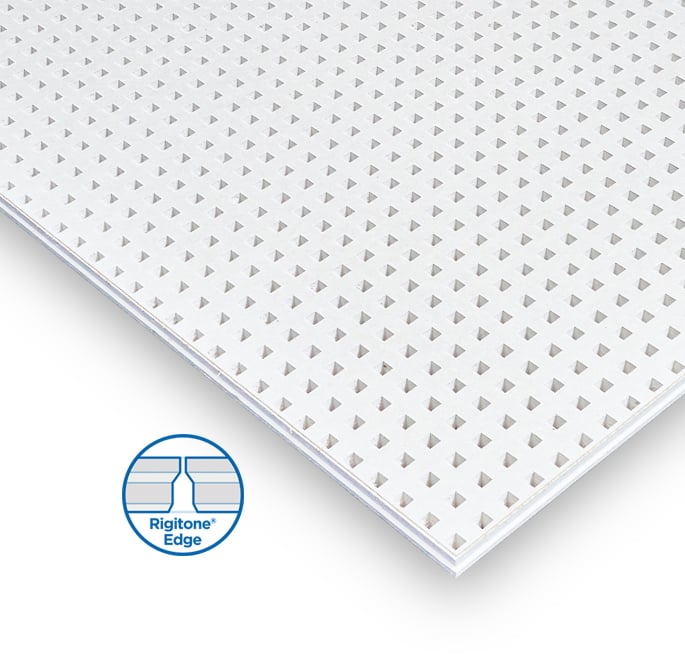 Die Rigitone Edge Activ’Air 8/18 Q ist eine Lochgipsplatte nach NF EN 14190 mit Premium-Luftreinigungseffekt Activ’Air und rückseitig kaschiertem Akustikvlies.