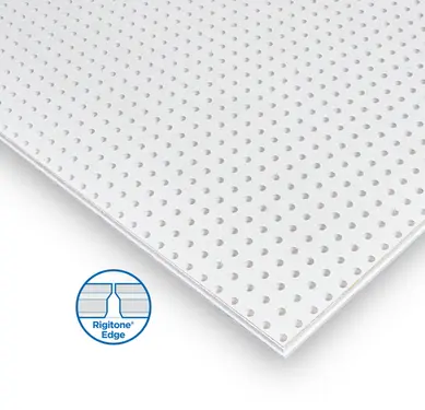 Die Rigitone Edge Activ’Air 8/18 ist eine Lochgipsplatte nach NF EN 14190 mit Premium-Luftreinigungseffekt Activ’Air und rückseitig kaschiertem Akustikvlies.