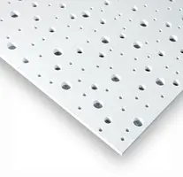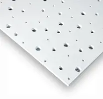Die Rigitone Lochdeckenschraube von Rigips dient zur Befestigung von Rigitone-Lochplatten auf Metallprofilen aus Stahlblech bis 0,7 mm Dicke.