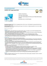 Der VARIO 30 Fugenspachtel von Rigips ist ein gipsgebundenes und hoch kunststoffvergütetes Fugenspachtelmaterial gemäß DIN EN 13963/Typ 4B. Die Verarbeitungszeit beträgt ca. 30 Minuten. Das Material lässt sich schnell und klumpenfrei anrühren. Es zeichnet sich durch sehr gutes Haftvermögen aus, es hat ein äußerst geringes Einfallverhalten und verfügt über sehr hohe Fugenfestigkeiten (mit Glasfaserbewehrungsstreifen). Es lässt sich sehr geschmeidig verarbeiten und ist sehr leicht schleifbar. Verbauch: ca. 300 g/qm