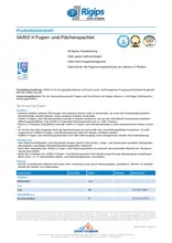 Der VARIO H Fugen- und Flächenspachtel ist ein gipsgebundenes und hoch kunststoffvergütetes Fugenspachtelmaterial gemäß DIN EN 13963/Typ 4B. Die Verarbeitungszeit beträgt ca. 40 Minuten. Das Material lässt sich schnell und klumpenfrei anrühren. Es zeichnet sich durch sehr gutes Haftvermögen aus, es hat ein äußerst geringes Einfallverhalten und verfügt über sehr hohe Fugenfestigkeiten (mit Glasfaserbewehrungsstreifen). Es lässt sich sehr geschmeidig verarbeiten und ist sehr leicht schleifbar. Verbauch: ca. 300 g/qm